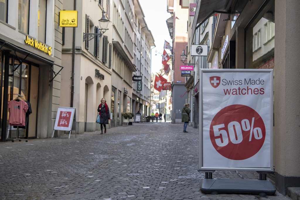 O número de turistas estrangeiros, especialmente da China, caiu significamente desde o início da epidemia de coronavírus. Na foto uma rua geralmaente movimentada em Lucerna.
